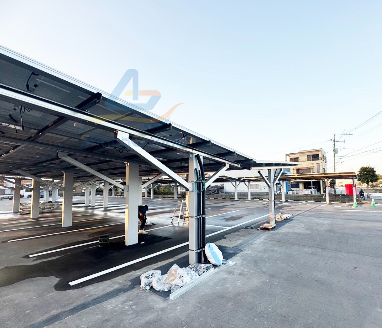 Solution:The carport is constructed from high-strength carbon steel, providing excellent load-bearing capacity and durability. This ensures stable support for solar panels and reliable performance over many years of operation.
